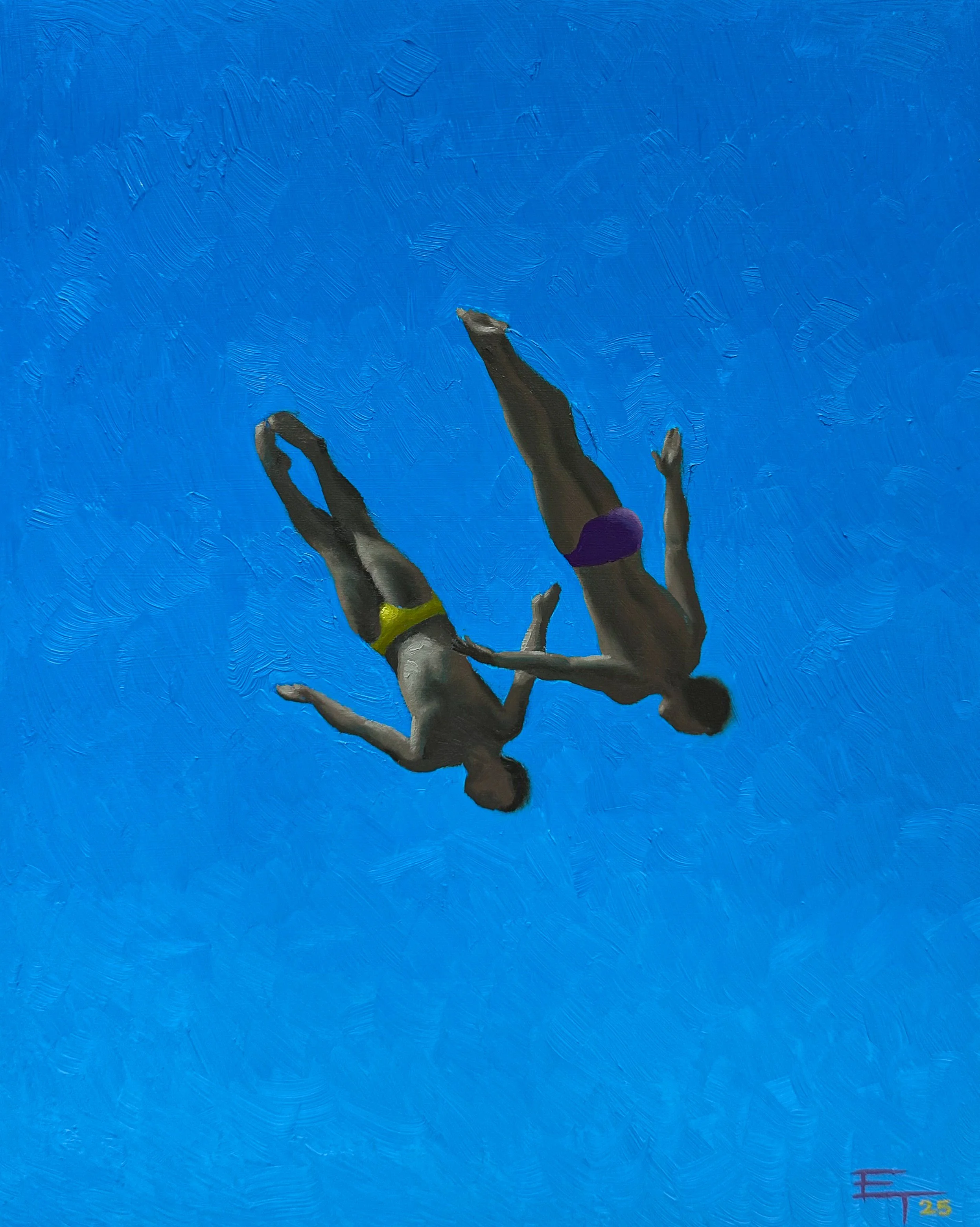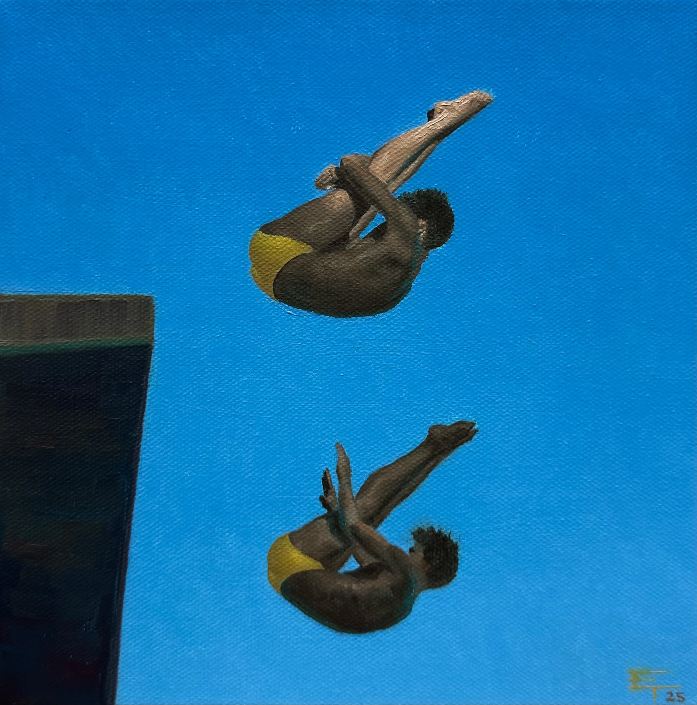 Synchro Divers 01, oil on canvas, 6” x 6”